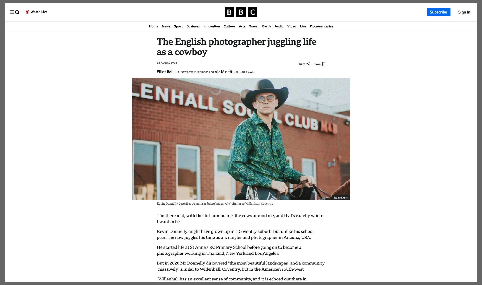 Kevin Donnelly October 19, 2025 Absolutely brilliant write up on BBC News about me and my photography. Thank you!https://www.bbc.com/news/articles/c8e18k54wrko